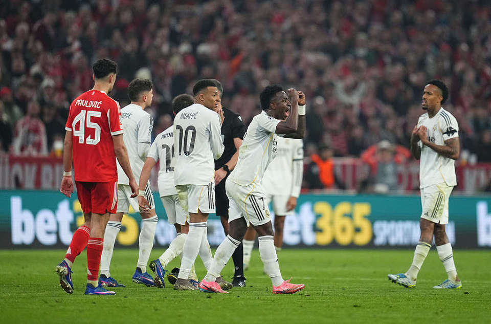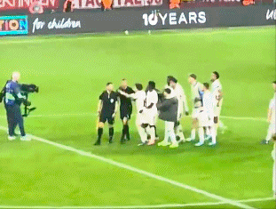 赛后,不甘心出局的维尼修斯、贝林厄姆、居莱尔等皇马球员,愤怒追着本场裁判组成员讨说法。